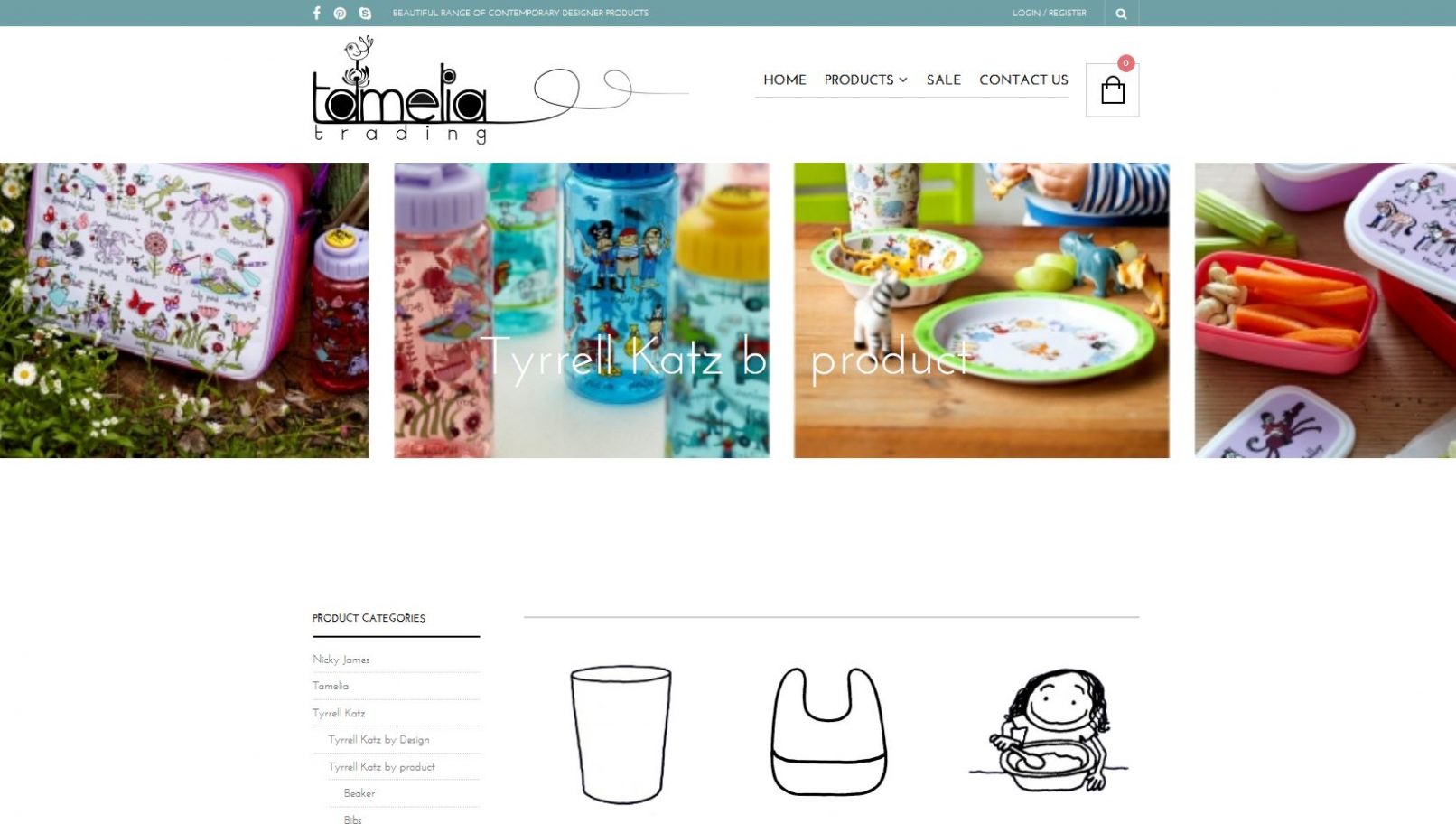 Tamelia Trading are a print based design company and distributors of Tyrrell Katz. Their website needs to portray the fun quirky products as well as offer eCommerce facilities.